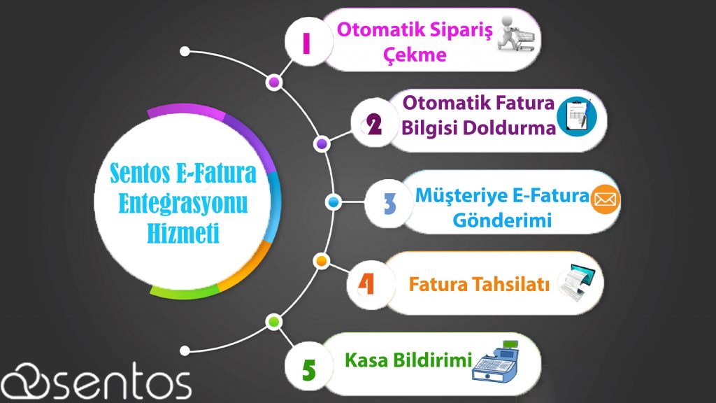 - Mali mühür ya da e-imza alan satıcılar e-fatura entegrasyonu hizmetinden faydalanarak kolay bir fatura yönetimi ayrıcalığını elde ederler. Sentos E-Fatura Entegrasyonu hizmeti ile hem uygun fiyatlı seçeneklerle fatura gönderebilir, hem de fatura alabilirsiniz.